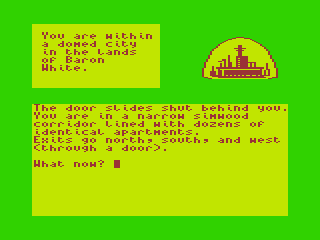 1985, the year Juxtaposition: Barons of Ceti V was released on Dragon 32/64. Published by Wintersoft, this adventure game is available for free on this page.
