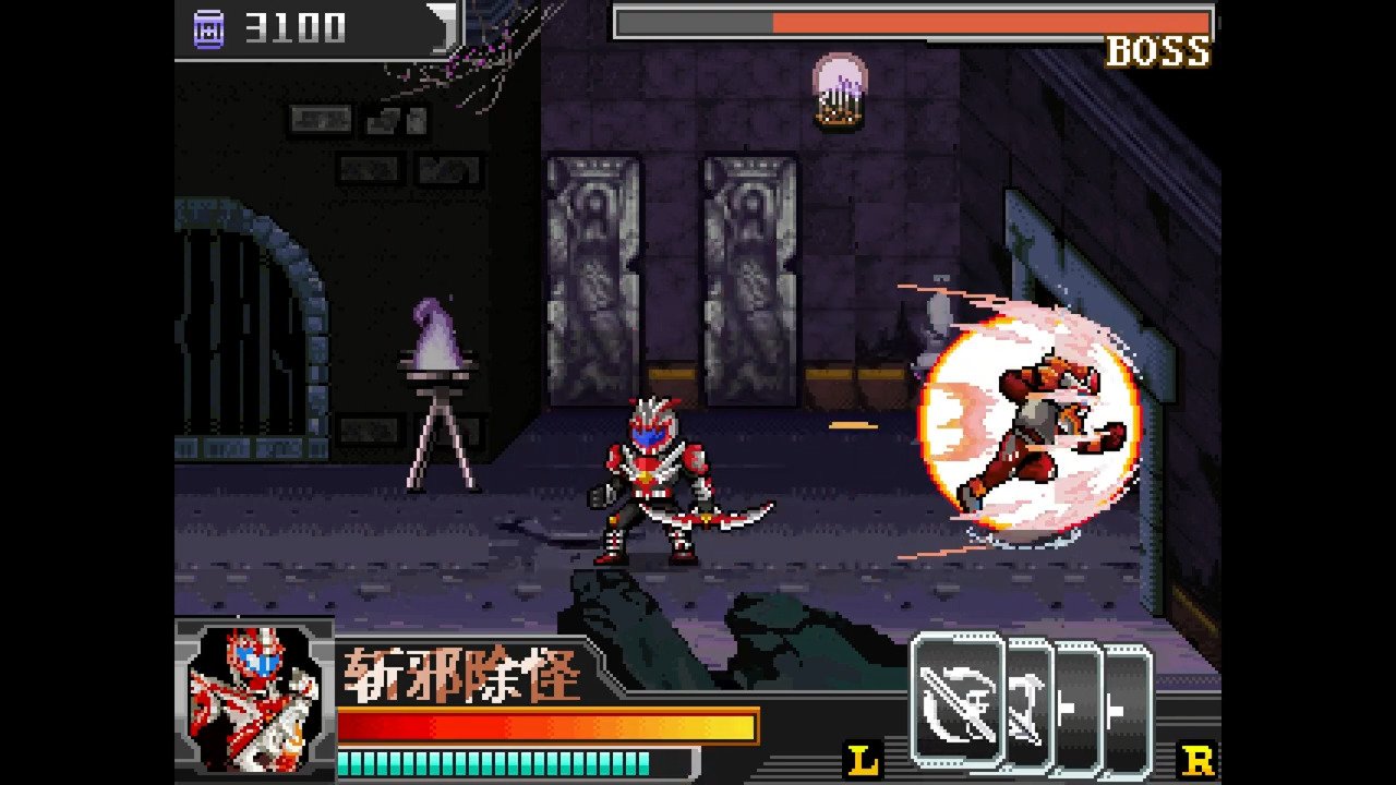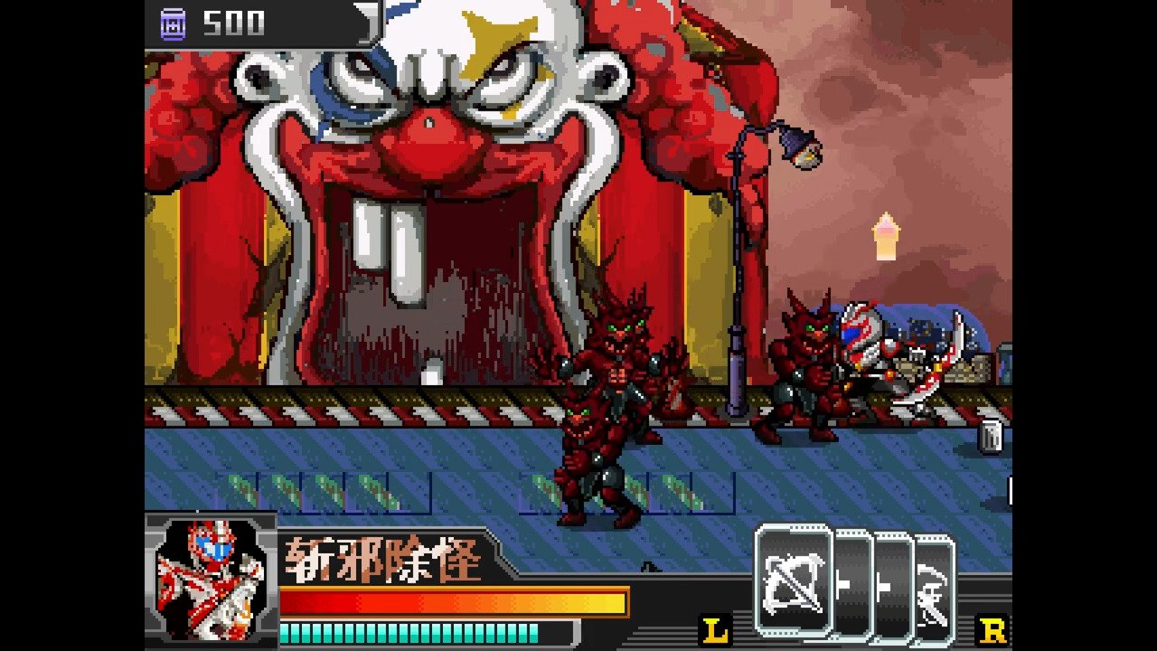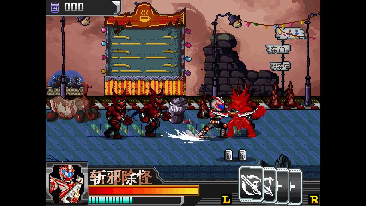 Kǎijiǎ yǒngshì dàluàn dòu is a video game published in 2014 on Monon Color by M&D. It's an action game, set in a licensed title and beat 'em up / brawler themes.