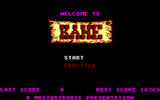 1985, the year Kane was released on Commodore 64, as well as Amstrad CPC, BBC Micro, Commodore 16, Plus/4, Electron and ZX Spectrum. Published by Mastertronic Ltd., this action game is available for free on this page.