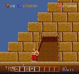 Although it may seems like a standard platform fare, what makes Karnov very addictive is the huge variety: each of the game's nine levels is packed with new terrain, monsters, and power-ups to collect and use. In contrast to other games, some items you can collect in Karnov are non-weapon items that are extremely useful. For example, a ladder gives you access to the upper elevation where you might find hidden items, or even secret passages in underground caverns. Many levels also have alternative routes, which are useful for when the going gets tough.