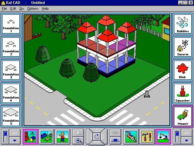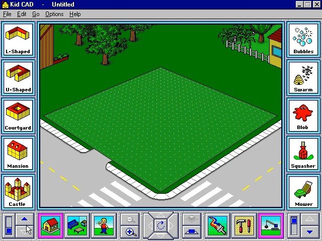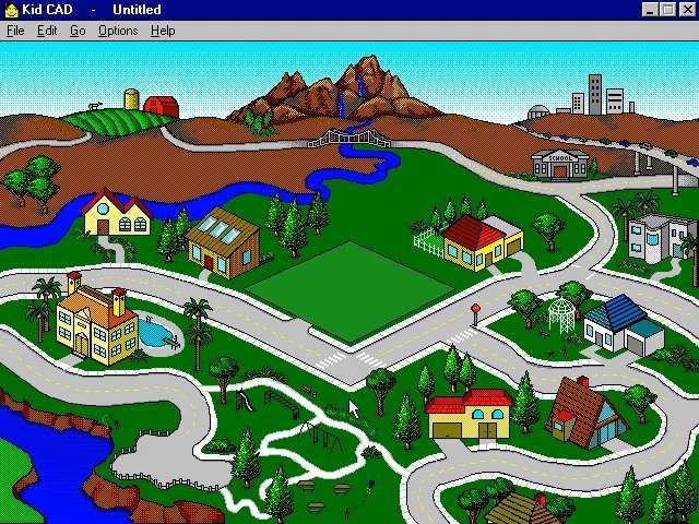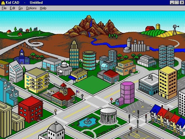 In 1993, Davidson & Associates, Inc. publishes Kid CAD on Windows 3.x. This simulation game is now abandonware and is set in a graphics / art and city building / construction simulation themes.