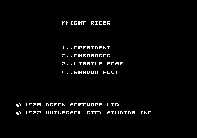 1986, the year Knight Rider was released on Commodore 64, as well as Amstrad CPC and ZX Spectrum. Made by Ocean Software Ltd. and published by Ocean Software Ltd., this action and racing / driving game is available for free on this page.