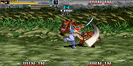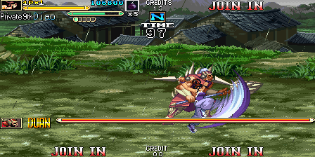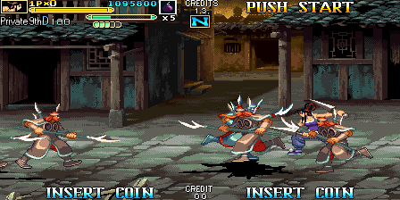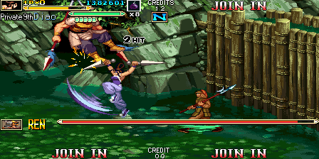 Here is the video game “Knights of Valour 2: New Legend”! Released in 2008 on Arcade, it's still available and playable with some tinkering. It's an action game, set in an anime / manga, beat 'em up / brawler and china (ancient/imperial) themes.