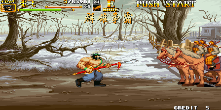 In 2001, International Games System Co., Ltd., Alta Co., Ltd. publishes Knights of Valour 2: Nine Dragons on Arcade. This action game is now abandonware and is set in an anime / manga, fantasy, beat 'em up / brawler and china (ancient/imperial) themes.