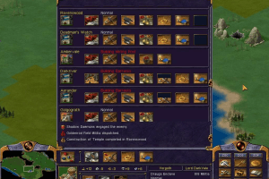 While Kohan follows the familiar collect-resources-to-expand-empire formulae of most RTS games, it doesn't focus as much on resource management as other games. You won't see peasants chopping up wood and harvesting livestock here - instead, Kohan uses an abstract, virtually transparent economic model (similar to Imperialism). Resources such as gold, iron, and wood are collected automatically from cities under your control. Depending on the size of your cities, each location will take in (and spend) a certain amount of gold in taxable revenue. With a balanced economy, gold reserves will slowly increase until reaching a maximum level for stockpiling. The bonuses you gain for founding new settlements gives rise to the most interesting feature that not only sets Kohan far apart from all other RTS games: the concept of zones.