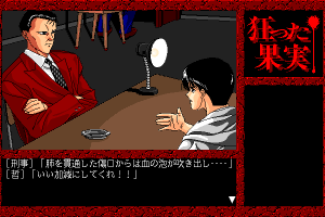 Kurutta Kajitsu (aka 狂った果実) is a video game published in 1992 on PC-98 by FairyTale. It's an adventure game, set in an adult, anime / manga and detective / mystery themes, and was also released on Sharp X68000.