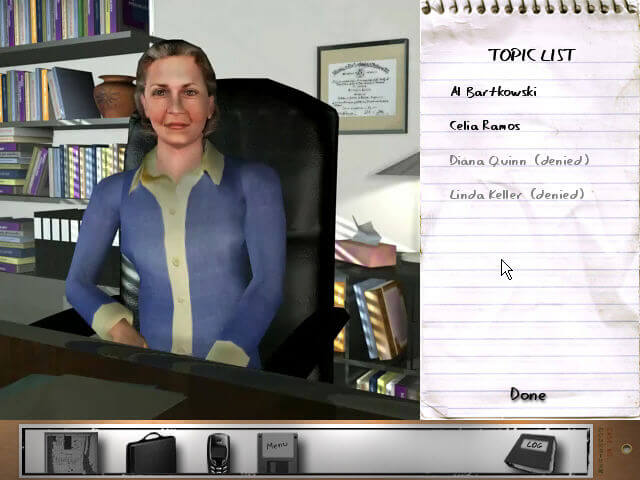 Here is the video game “Law & Order II: Double or Nothing”! Released in 2003 on Windows, it's still available and playable with some tinkering. It's an adventure game, set in a detective / mystery, puzzle elements, law enforcement and tv series themes.
