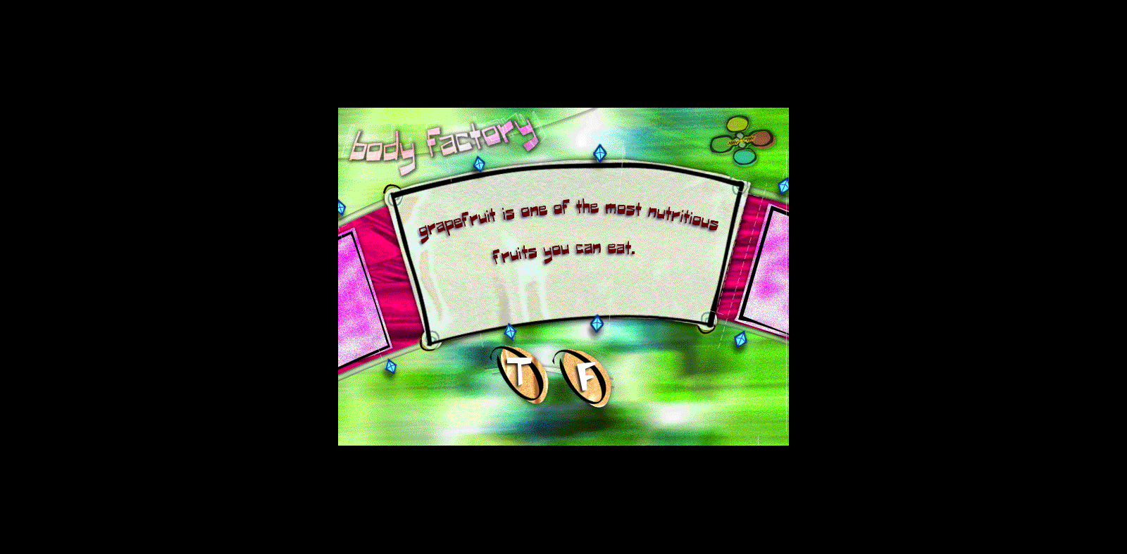 Here is the video game “Let's Talk About Me Too”! Released in 1997 on Windows, it's still available and playable with some tinkering. It's an educational game, set in a health / nutrition and reading / writing themes.