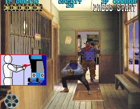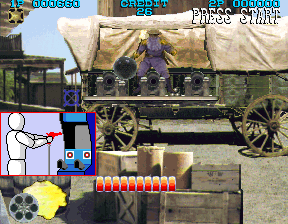 Lethal Enforcers II: Gun Fighters (aka リーサルエンフォーサーズII ザ・ウエスタン) is a video game published in 1994 on Genesis by Konami (America), Inc.. It's an action game, set in an arcade, western, rail shooter and law enforcement themes, and was also released on Arcade.