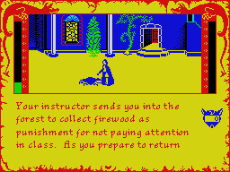 Here is the video game “Lone Wolf: Flight from the Dark”! Released in 1984 on ZX Spectrum, it's still available and playable with some tinkering. It's an action and role-playing (rpg) game, set in a fantasy, licensed title, survival and interactive book themes.