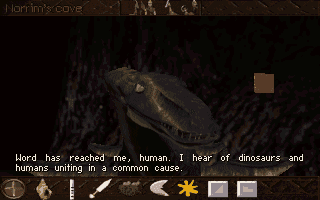 Lost Eden, an ambitious title from Cryo Interactive, sets out to put this question to rest and to theorize on why the dinosaurs disappeared. It is an age of unrest and the alliance between humans and dinosaurs is weakening due to an evil dinosaur that is set on ruling the earth. Adam of Mo, a human, meets with his father and finds out that he has the rare ability to unite the humans and dinosaurs. Adam, along with two dinosaur friends, is sent on a mission to protect the human/dinosaur alliance.