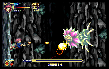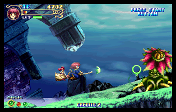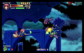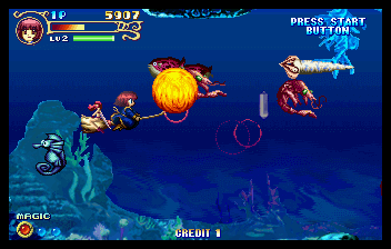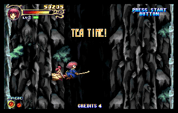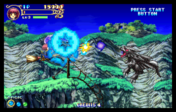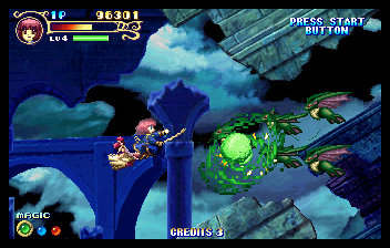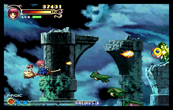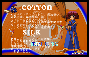 Here is the video game “Magical Night Dreams: Cotton 2”! Released in 1997 on SEGA Saturn, it's still available and playable with some tinkering. It's an action game, set in an anime / manga, arcade and shooter themes and it was released on Arcade as well.