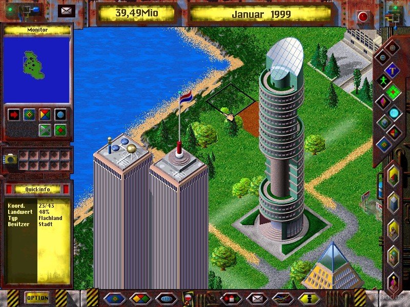 Manhattan: Krieg der Baumagnaten is a video game published in 1998 on Windows by NBG EDV Handels- und Verlags GmbH & Co. KG. It's a strategy and simulation game, set in a managerial and city building / construction simulation themes.