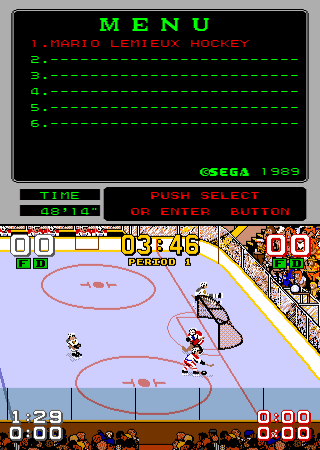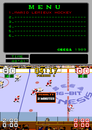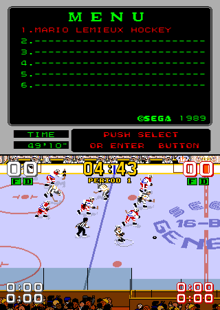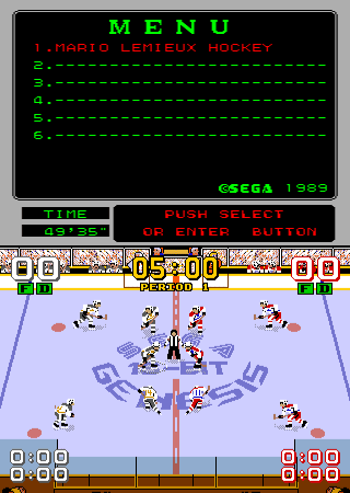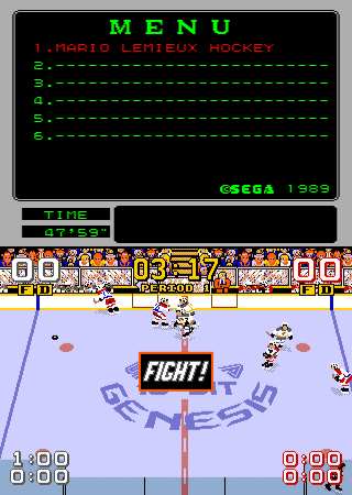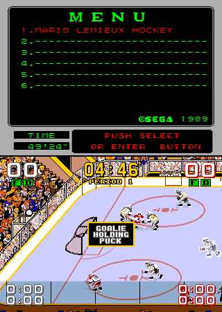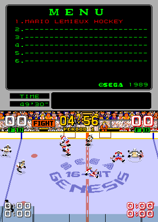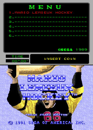 Mario Lemieux Hockey is a video game published in 1991 on Genesis by SEGA of America, Inc.. It's a sports game, set in a hockey and licensed title themes, and was also released on Arcade.