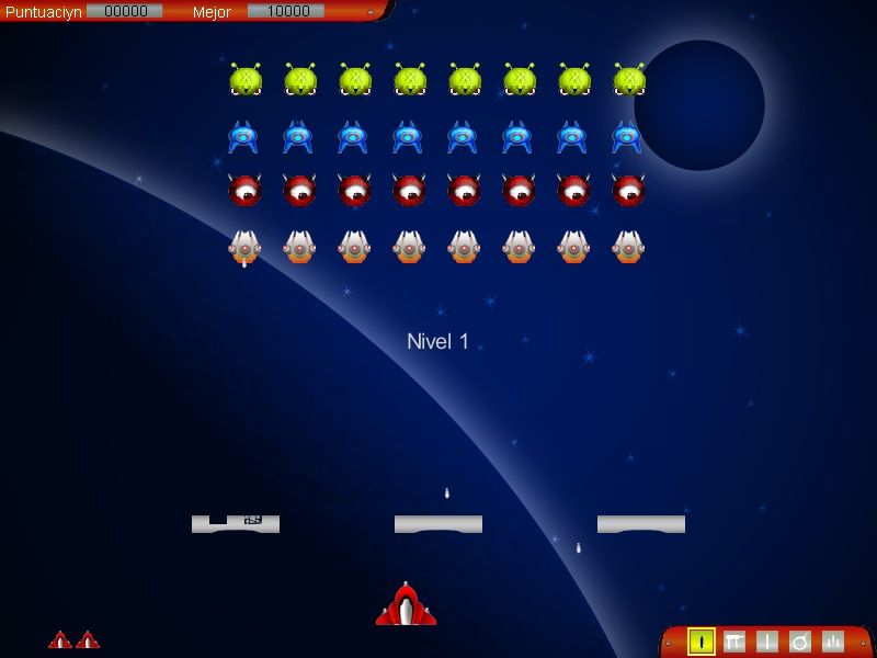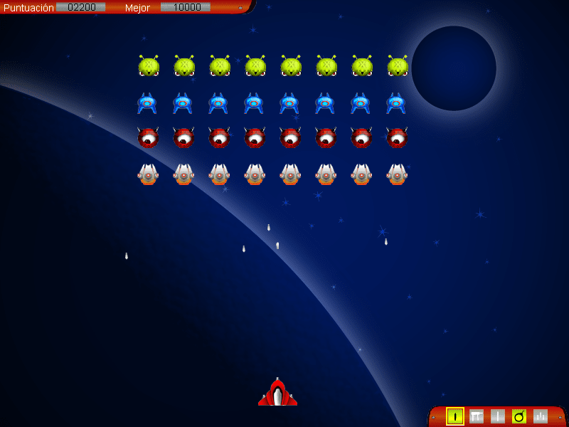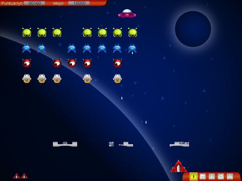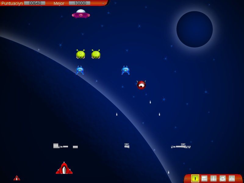 Here is the video game “Martians: Space Conquerors”! Released in 2002 on Windows, it's still available and playable with some tinkering. It's an action game, set in an arcade, sci-fi / futuristic and shooter themes.