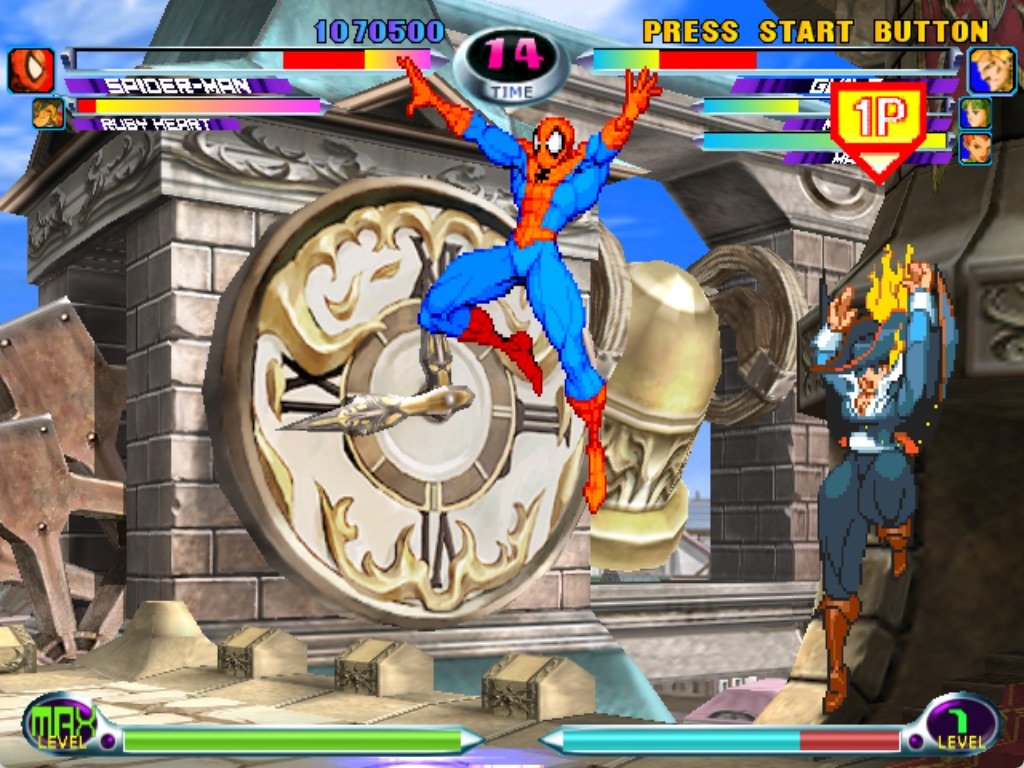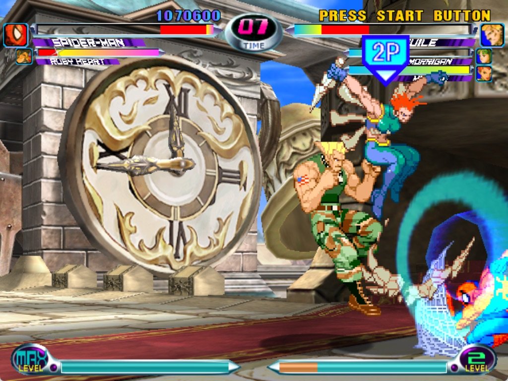 In 2000, Capcom Co., Ltd. publishes Marvel vs. Capcom 2: New Age Of Heroes on Arcade. This action game is now abandonware and is set in an anime / manga, fighting and licensed title themes.