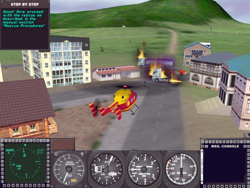Here is the video game “Medicopter 117: Jedes Leben zählt 3”! Released in 2002 on Windows, it's still available and playable with some tinkering. It's an action and simulation game, set in a helicopter and licensed title themes.