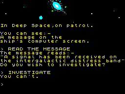 If you haven't played Message from Andromeda or want to try this adventure video game, download it now for free! Published in 1984 by Interceptor Software, Message from Andromeda was an above-average interactive fiction title in its time.