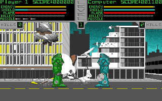 Here is the video game “Metal: A Robot Combat Simulation”! Released in 1989 on Amiga, it's still available and playable with some tinkering. It's an action game, set in an arcade, battlemech, fighting and sci-fi / futuristic themes.