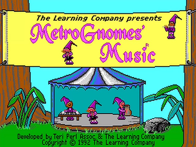 In 1992, The Learning Company publishes MetroGnomes' Music on DOS. This educational game is now abandonware and is set in a fantasy, music, pre-school / toddler and mini-games themes.