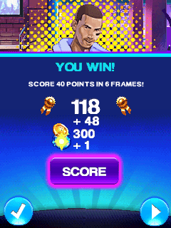 Here is the video game “Midnight Bowling 3”! Released in 2012 on J2ME, it's still available and playable with some tinkering. It's a sports game, set in a bowling theme.