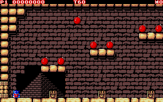 Conversion of Tecmo's arcade follow-up to the fun game Bombjack. I loved both the C64 and the arcade version of the first part. This follow-up that adds a scrolling multi-screen dimension never was one of my favorites. The fairly poor PC conversion didn't change that by a lot.