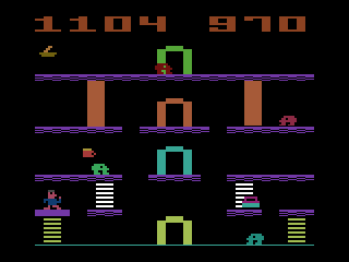 The best thing about Miner 2049er is that each of the ten level is carefully laid out. Similar to games like Flashback that are ostentatiously action games, sometimes there is only one way to finish the level - but it will take you dozens of tries to figure it out because the path is not always obvious. This gives Miner 2049er an added layer of complexity that puts it far and above all other climbing games. One annoyance I had with the game is that you have to time your jumps very precisely - you will miss them if you are only one pixel off. This is true even on the lowest difficulty level (the game has ten), so if you are easily frustrated, you might find the game more tedious than fun. For me the precision required is just part of the challenge, because the game is very addictive. Unlike Donkey Kong where gameplay remains more or less the same from level to level, screens in Miner 2049er have many special features you can use, including slides, movable hoist, teleporters, cannons, and many others.