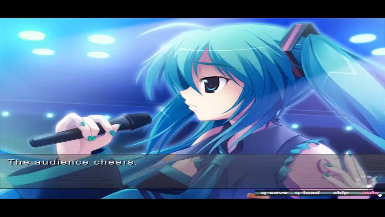 Here is the video game “Mirai no Uta to, Tsunagaru Hitomi”! Released in 2009 on Windows, it's still available and playable with some tinkering. It's an adventure game, set in an anime / manga, music, visual novel, romance and fangame themes.