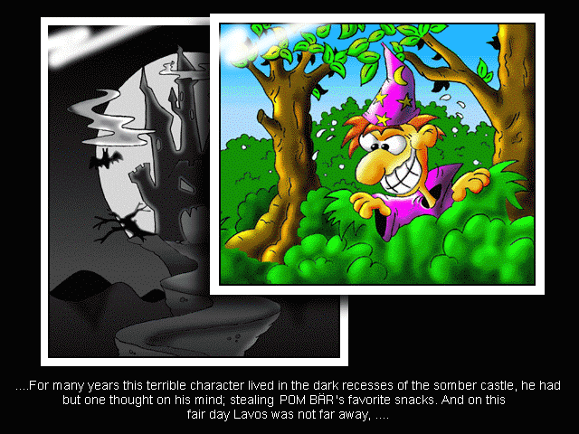 1997, the year Mission Pom-Bär: The Snack'N Run Game was released on DOS. Made by Digital Artworx and published by Wolf Snack & Gebäck GmbH, this action game is available for free on this page.