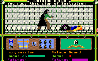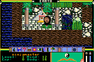 One of the first games produced in the Western hemisphere that are based on Oriental motif, Moebius is an ambitious design that didn't quite pull it off. Your job, as disciple of the Headmaster, is to recover the Orb of Celestial Harmony from disciple-turned-badguy Kaimen. To do that, you must train your body and soul in the best tradition of Chinese warriors: to "walk the path of Moebius the Windwalker."