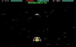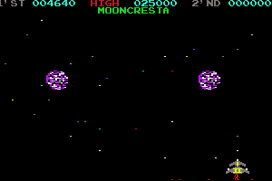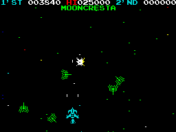 Here is the video game “Moon Cresta”! Released in 2001 on Windows, it's still available and playable with some tinkering. It's an action game, set in an arcade, sci-fi / futuristic, shooter and shmup themes and it was released on Amstrad CPC, Arcade, BBC Micro, Commodore 64, Dragon 32/64 and ZX Spectrum as well.