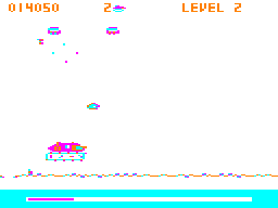 Here is the video game “Moon Hopper”! Released in 1983 on Dragon 32/64, it's still available and playable with some tinkering. It's an action game, set in an arcade, sci-fi / futuristic and shooter themes.