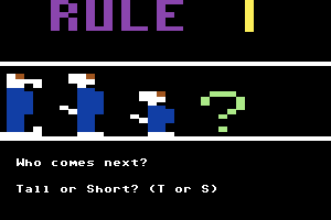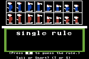 Overall, this is a fun little game, all coded in BASICA, that will teach kids a thing or two about logic. This is a cut-down version of the original Apple II release, which contains 6 more games-- let me know if anyone can confirm whether Learning Company ever released the full game for PC.