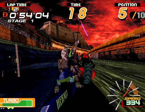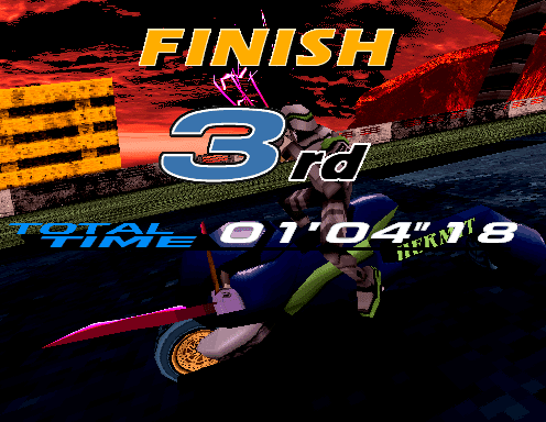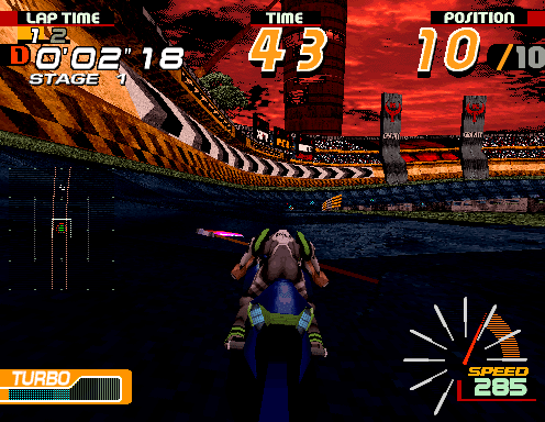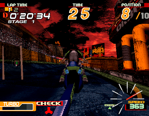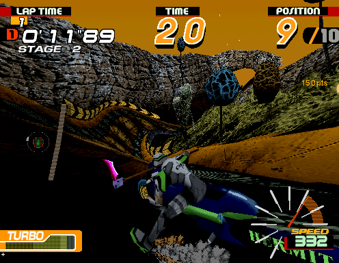 Here is the video game “Motor Raid”! Released in 1997 on Arcade, it's still available and playable with some tinkering. It's a racing / driving game, set in a sci-fi / futuristic theme.