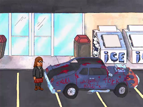 All you'd expect from the eternally juvenile duo is here: fart jokes, painfully obvious sexual innuendoes, glorification of anything illegal or immoral, and the fruitless pursuit of girlfriends with one-liners such as, "Hey, um, do you like to do, like, stuff?" As with the show, the writers' satirical genius puts these antics into a perspective that makes everything undeniably funny. You appropriately control the two half-wits with a simple set of commands, using a mouse-driven interface that looks and operates suspiciously like a LucasArts adventure game.