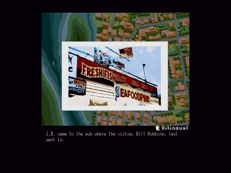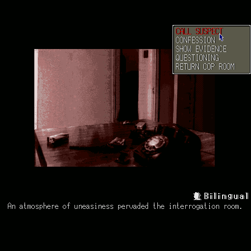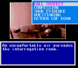J.B. Harold in: Murder Club is a little-known PC conversion of a TurboDuo game of the same name. As investigator JB Harold, you must investigate the murder of a well-known businessman and bring the murderer to court. Gameplay is very much "by the book": interrogate suspects, submit evidence for analysis, establish the motive, method and opportunity of the killer, and finally see if your case stands up in court. Despite some writing quirks (perhaps due to poor translation), and somewhat "dry" gameplay, it's still a solid and thoroughly challenging game.