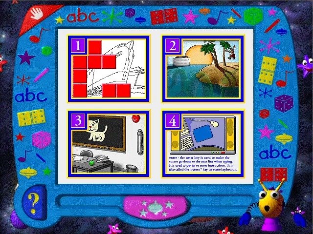 In 1996, T/Maker Company publishes My Very First Software on Windows 3.x. This educational game is now abandonware and is set in a graphics / art, pre-school / toddler, reading / writing, sci-fi / futuristic, hidden object, mini-games, contemporary, interactive book and puzzle elements themes.