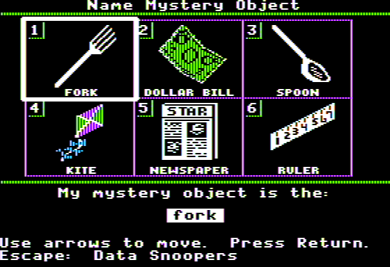 If you haven't played Mystery Objects or want to try this educational video game, download it now for free! Published in 1988 by MECC, Mystery Objects was an above-average math / logic title in its time.