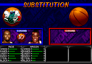 Before I go on, for those of you who are not familiar with NBA Jam, here's a short explanation: the game is actually a mockery of basketball, played 2-on-2 full court with players from real NBA teams (all of which have their faces as part of the animation's). "Normal" looking scoring is frowned upon- the more preposterous the way you put the ball in the net, the better. This includes some very interesting maneuvers, like full body windmills, and lots of pushing and shoving. Score three in a row without scoring from the other team, and you will become "on fire", which will not only help you with your shooting or blocking (no more goaltending!), but will actually burn the nets when your shots go through. And if you manage to pull off some really crazy stuff several times in a row, your team will be "on fire", which is great fun and beats Quake easily on adrenalin levels. Fouls are unheard of, as are violations of any kind except the 24 second shot clock and goaltending. Its fast and furious, and loads of fun.
