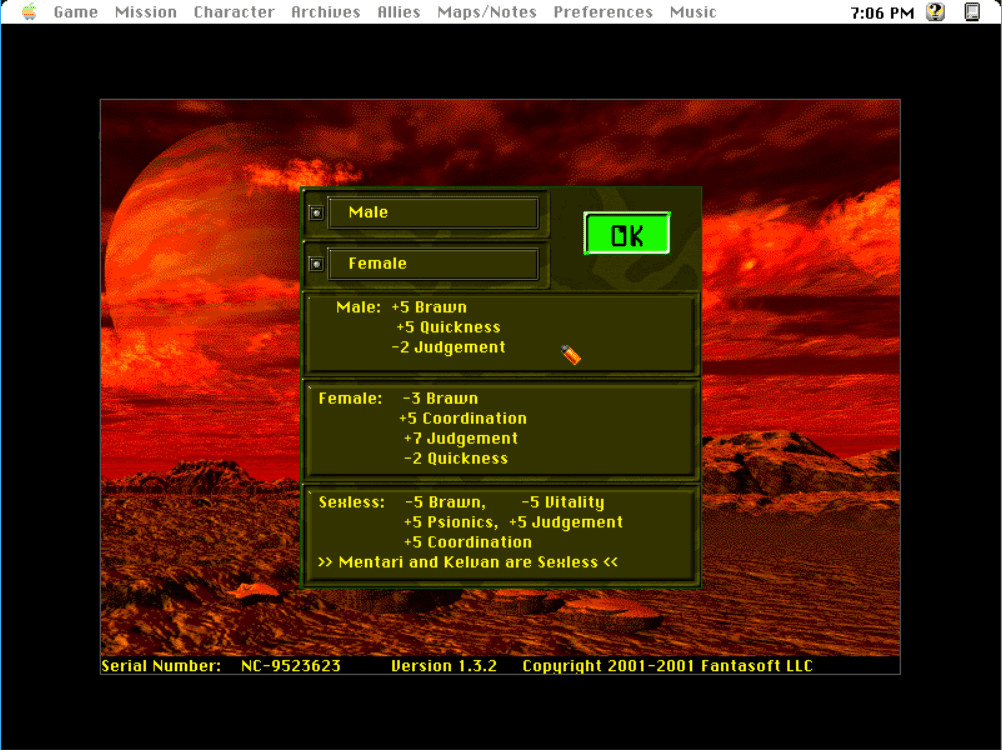 Buck's Serial Number Generator (BSNG) is a plugin to generate registration codes. If you enter 911 as the registration code you can unlock the Warrior Editor, instructions are in the link to BSNG plugin. Visit MacintoshGarden for more information about the game