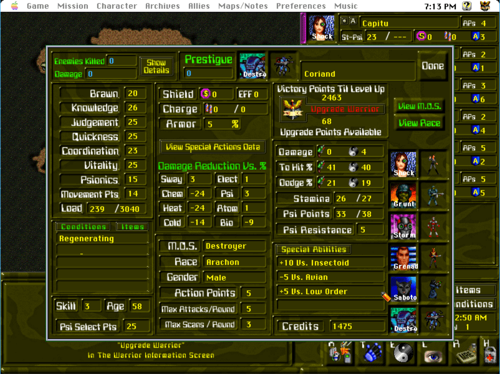 New Centurions is a video game published in 2001 on Mac by Fantasoft LLC. It's a role-playing (rpg) and strategy game, set in a sci-fi / futuristic, turn-based and tactical rpg themes.