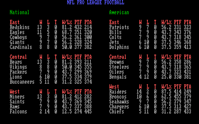 In 1989, Micro Sports Inc publishes NFL Pro League Football on DOS. Also published on Mac, this simulation and sports game is abandonware and is set in a football (american) and licensed title themes.