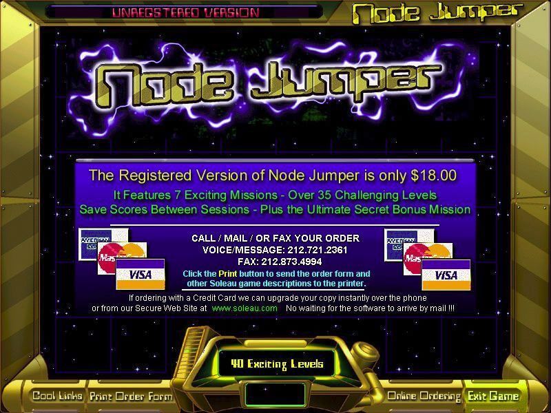 2001, the year Node Jumper was released on Windows, as well as Mac. Made by Soleau Software, Inc. and published by Soleau Software, Inc., this action and puzzle game is available for free on this page.