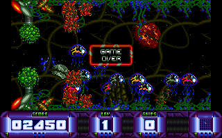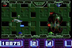 Here is the video game “Nucleus”! Released in 1991 on Amiga, it's still available and playable with some tinkering. It's an action game, set in an arcade, sci-fi / futuristic and shooter themes.