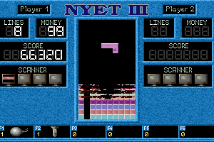 One of the most original and best Tetris clones ever made, Nyet 3 makes the basic align-the-falling-blocks gameplay of Tetris much more fun with the addition of money, which you collect when beating a level, and many power-ups.