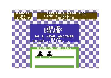 While the game is neither as realistic nor offering as many options as the 1992 Oil Barons by Earl Long of Starsoft, this Epyx version is still entertaining, and has more of a strong board game feel than Starsoft version. So if you enjoy the likes of M.U.L.E. or Cartel$ & Cutthroat$, you will likely find Oil Barons a fun "light" business game that is best played against friends in hot-seat mode. Recommended!