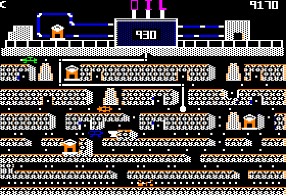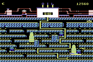 As MobyGames describes it, the objective is to: "...extend your oil-mining robotic arm deep below the earth's crust to mine oil and line your pockets. But watch out for the monstrous bugs that lie in wait for you -- one touch of them to the robotic arm and you lose a life!"