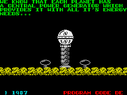 Omega One is a video game published in 1987 on ZX Spectrum by Mastertronic Ltd.. It's an action and adventure game, set in a sci-fi / futuristic theme.