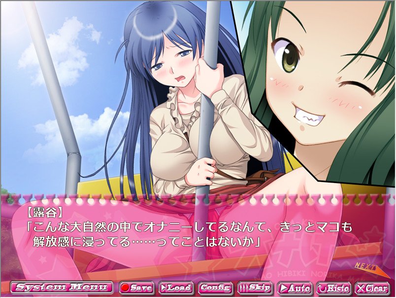 Here is the video game “Ona Ken! 1.4 -Tabi no Haji wa Kakisute-”! Released in 2013 on Windows, it's still available and playable with some tinkering. It's an adventure game, set in an adult, anime / manga and visual novel themes.