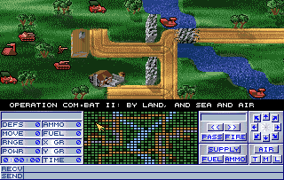 Operation Combat II: By Land, Sea & Air is a video game published in 1993 on DOS by Merit Studios, Inc., Junkyard, Memorex Software. It's a strategy game, set in a tank and turn-based themes, and was also released on Amiga.